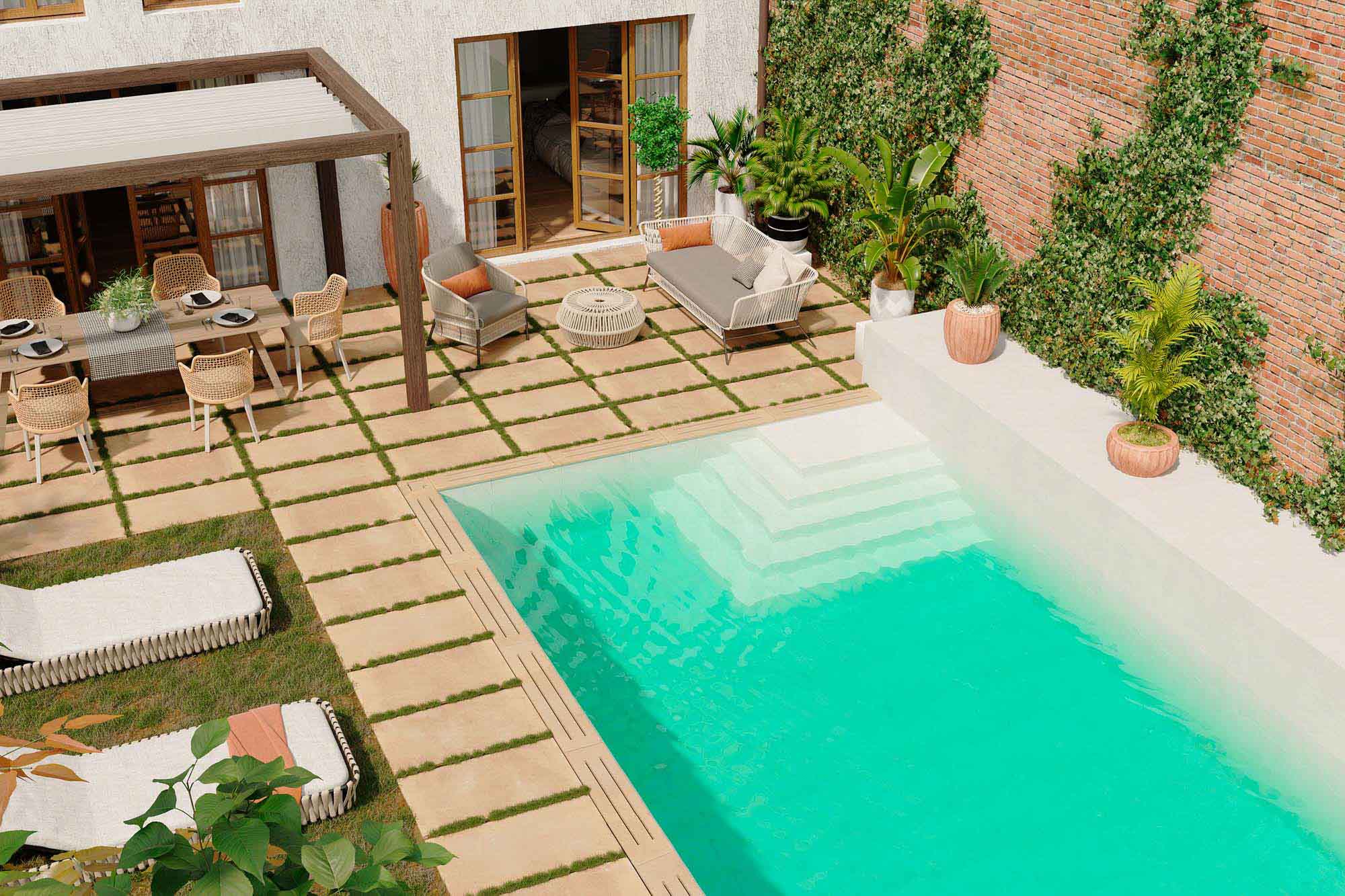 En primer lugar, su resistencia al desgaste y a la humedad los hace ideales para espacios de alto tránsito y zonas húmedas, como baños, cocinas y exteriores. Además, son resistentes a las manchas y fáciles de limpiar, lo que los convierte en una opción de bajo mantenimiento, ideal para hogares modernos y espacios comerciales.